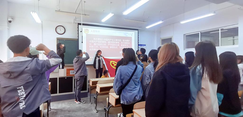 活动中,全体师生共唱《中华人民共和国国歌》,宣读本年度新发展团员名单,发放团徽、团员证,观看党史教育视频,新老团员代表分享成长体会交流、感悟跟党初心。最后,举行了庄严的入团宣誓暨重温入团誓词仪式,接受思想洗礼。大家纷纷表示,作为新一代的青年,要更加努力奋斗,奉献青春,传承红色基因,以优异的成绩为中国共产党百年华诞献礼。
