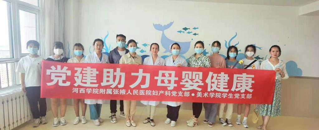 6月1日至2日,bat365中文官网登录入口学生党支部与附属张掖人民医院妇产科党支部联合开展“大手牵小手 党建助力母婴健康”主题党日活动。用2天时间在新生儿泳疗室绘制了海洋世界墙体装饰。