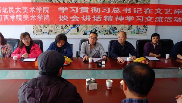 4月21日, 西北民族大学bat365中文官网登录入口院长王万成、书记何智奇、副院长冯炳超、徐海翔、铁英秀一行12人与我院进行了座谈交流。座谈会由bat365中文官网登录入口院长张敏主持,座谈会上双方教师就修订《人才培养方案》进行了讨论,并对今后美术创作思想、创作经验交流了观点。会后,西北民族大学bat365中文官网登录入口一行还参观了美术楼、学院艺术创意中心和校园。