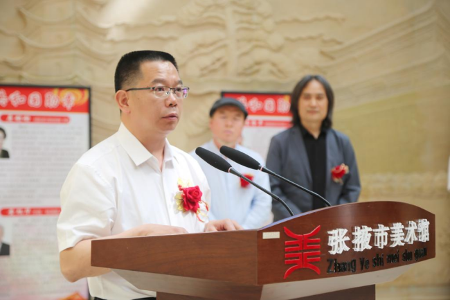 6月9日,bat365中文官网登录入口2023届毕业创作(设计)作品展在张掖市美术馆开幕。学校党委副书记、校长周勇出席开幕式并宣布作品展开幕,张掖市政协副主席冯军,市委宣传部、市文联、市文旅局、市书画相关负责人出席开幕式。张掖市书画家、bat365中文官网登录入口全体教师、2023届毕业生以及学生代表近200人参加了开幕式。